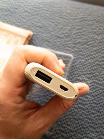 電用はType-Bのケーブル。充電させる端末につなぐケーブルType-Aになっています。私が使おうと思いましたが別にモバイルバッテリーを所有している上に、仕事で車を使うことが多いので、妻に私からのお年玉ということで差し上げることにしました。しかし、妻が使っているiPhoneSE2の付属のLightingケーブルがType-c端子のため、追加でケーブルを購入することになりました。SEはバッテリー容量が少ないので、モバイルバッテリーがあると便利なのでよかった思いました。