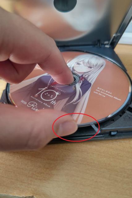 赤丸部分がくぼんでいるのでそこに手をかけてCDを取り出すようになっています。