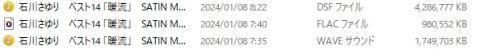 LP SIDE1,2 をWAVE録音して圧縮レベル5 FLACファイル、DSD128変換したファイルの大きさ