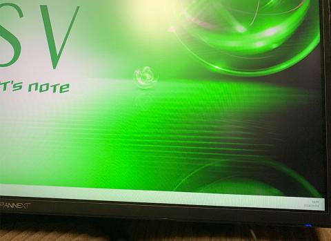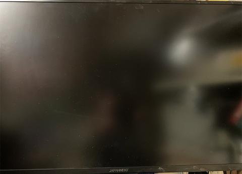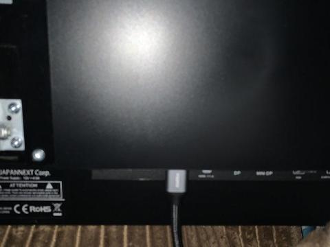 「JAPANNEXT」のロゴが表示された後、有効な入力ソースが無いという表示に切り替わります。これは正常な動作っぽいです。この後は用事があったので一旦動作チェックは中断します。またLet's note SV7もACアダプターを奪われては困りますので、これに近いアダプターを家捜しする必要もあります。