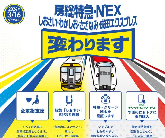 2024年3月16日から「特急しおさい号(*銚子発着に限る)」が成田エクスプレス用車両での運行になる