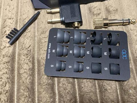 付属品は交換用イヤーピースとクリーニングツール、6.3mm変換プラグ、航空機アダプターとなります。