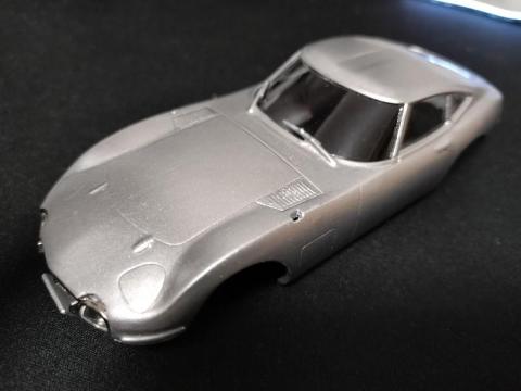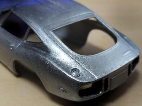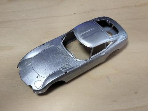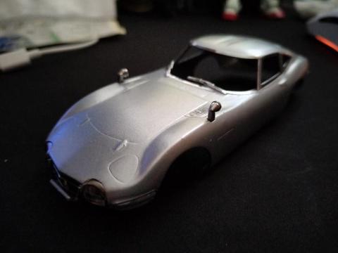 なので、練習用に軽めのものを、でもせっかくなので少しは楽しみたいと、アオシマのシンプルなキット、トヨタ2000GTを選んでみました。ボディ色はサンダーシルバーメタリックです。