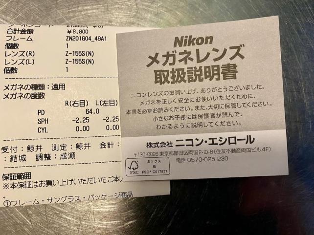 度数は弱いので、オプションの非球面レンズはアレば良い程度の効果しかないと自分を言い聞かせ