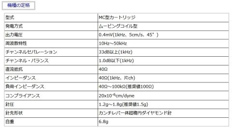 出力電圧 0.4mV/1kHz 5cm/sec 針圧 1.2~1.8g(最適1.5g)