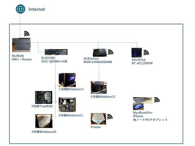 1号機&2号機のWindows11対応化&3号機(TrueNAS)の構成変更でついでに宅内ネットワークの2.5G化を進めようと考えました。10Gbpsとなるとかなり敷居は高くなりますが2.5G化ならNICやハブなどの機器も普及し始め価格もこなれて来たので導入には丁度良い頃合いかと。