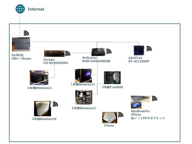 あとNURO光のONU兼ルーターは変更出来ないので当初APモードで動かしていたCG-WLR300NNHも無線LAN機器としての役目を終えカスケード接続されたハブとしてしか機能していなかったので整理しました。