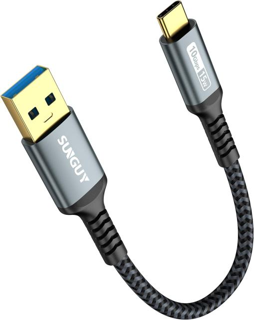両端子は、アルミ製のハウジングで、USB Type-A側のハウジングにはメーカーロゴ、USB Type-C側のハウジングには、10Gbps 15Wのシルク印刷が施されています。