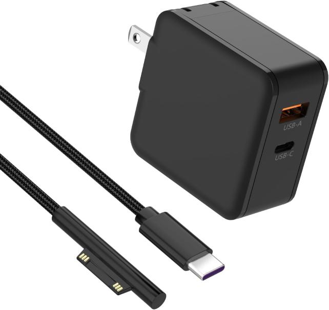 パッケージには、透明のブリスターに収まった、USB充電器本体、Surface用充電ケーブル、取扱説明書が入っていました。