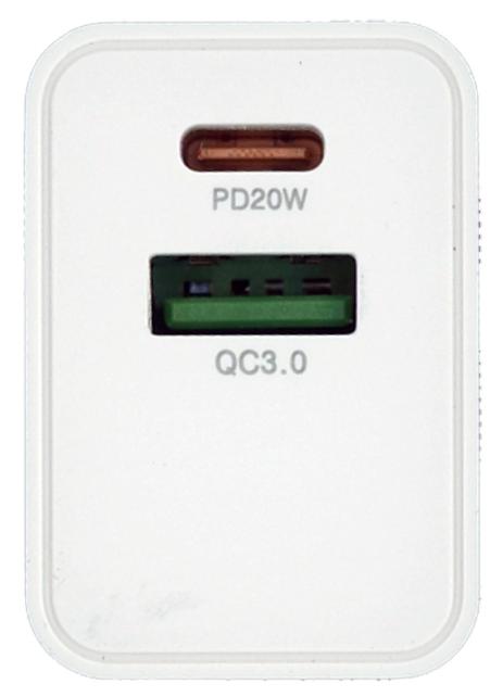 端子面は、USB Type-CとUSB Type-Aの二つの端子があり、各々に、PD20W / QC3.0の記載があります。
