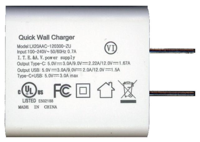 銘版を見てみると、USB Type-C端子は、5V/3A,9V/2.22A,12V/1.67Aの出力が得られます。