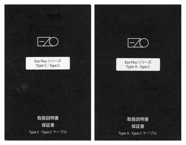 パッケージには、USB Type-Cのフラットケーブル、USB Type-A>Type-Cのフラットケーブル、及びそれぞれの取扱説明書が入っていました。