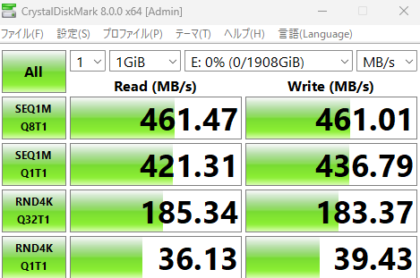 今まで,デスクトップ用にM.2を利用していたので,外付けケースを使う必要がなかったので,持っていませんでしたが,ノートPCで必要になったので,購入してみました.USB3.1gen2対応なので,10Gbpsの高速品です.ケースがヒートシンクにもなっています.