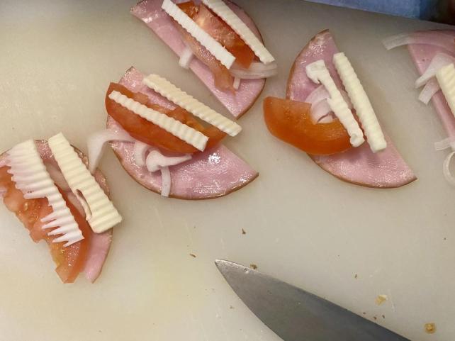 ロースハムとチーズ オニオンときゅうりとレタスを準備しつつ