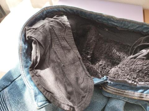 これを、通常のジーンズと同様に洗わずに、と考える人は少ないと思いますが、しっかり毎回に近いくらい洗わないと、ジーンズ素材の方はよくても内側がだいぶ蒸れる。