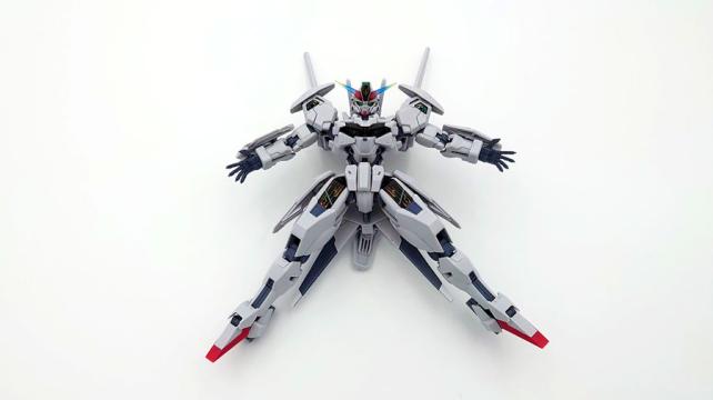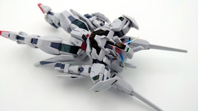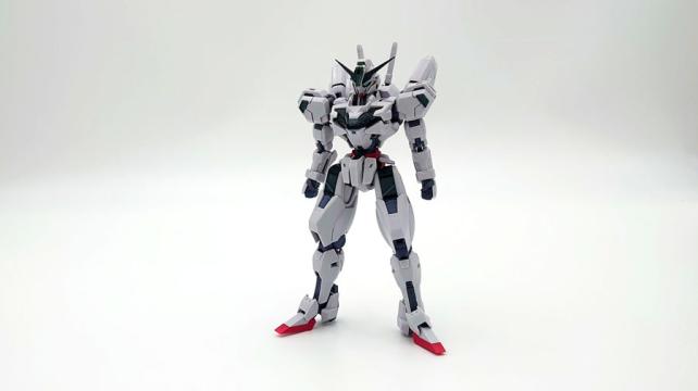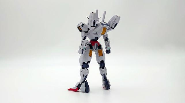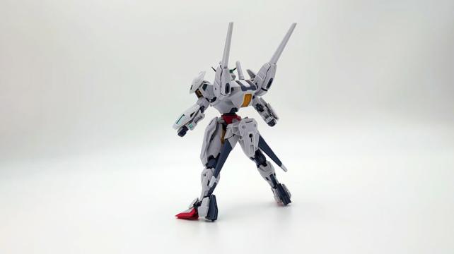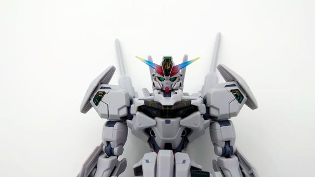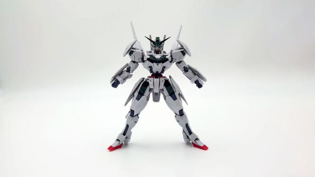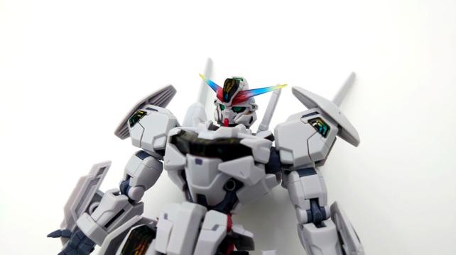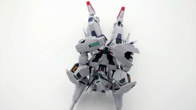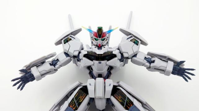 全体的に白い印象なのですが、完全な白ではなく少しくすんだ色をしています。外観的には超筋肉質の女性、それもボディービルダーや野生の獣を彷彿させるようなイメージです。数あるガンダムの中でも肉体的にマッシブな印象を受けるので、そちらのシルエットが好きな人には好みのガンダムのように思います。