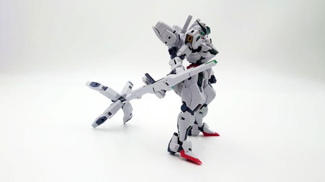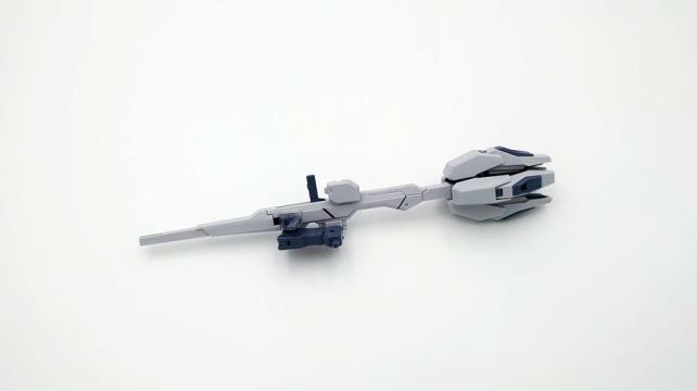 専用装備のバリアブルロッドライフル。最後部の推進器「クアドラ・スラスター」の展開ギミック、砲身の伸縮ギミックがあります。