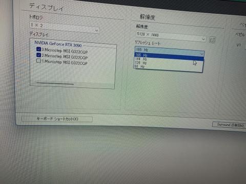 を買い足し動作検証しましたが買い足した2枚はSurroundで2×1で165Hzで動作します