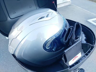 収納容量は30Lとのことですが、フルフェイスヘルメット(カブトのLサイズ)とグローブがちょうど入るくらいの容量です。
