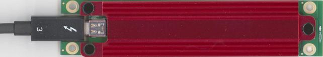 Thunderbolt3ケーブルを、基盤に挿した状態でケースに組み込むより、ケースにUSB Type-Cコネクターを出した方がコスト的にも安価に済みそうですが、一般的なUSB Type-Cケーブル使われて、速度が出ない状態を避けるためではないかと思います。