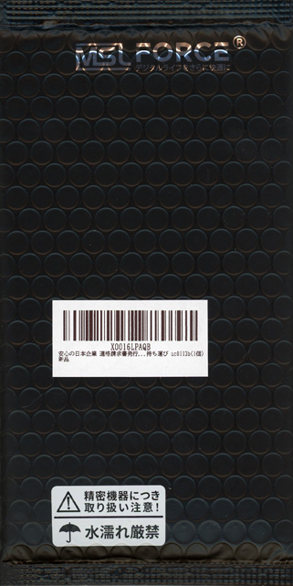 パッケージは、黒いエアキャップ製の薄い袋に、メーカーロゴが、銀で印字され、取扱注意/水濡れ厳禁が白抜きで印字されていました。
