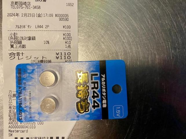 腕時計付き歩数計 YAMASA TM-250 の電池切れを受けて LR44電池を100均ショップで探索