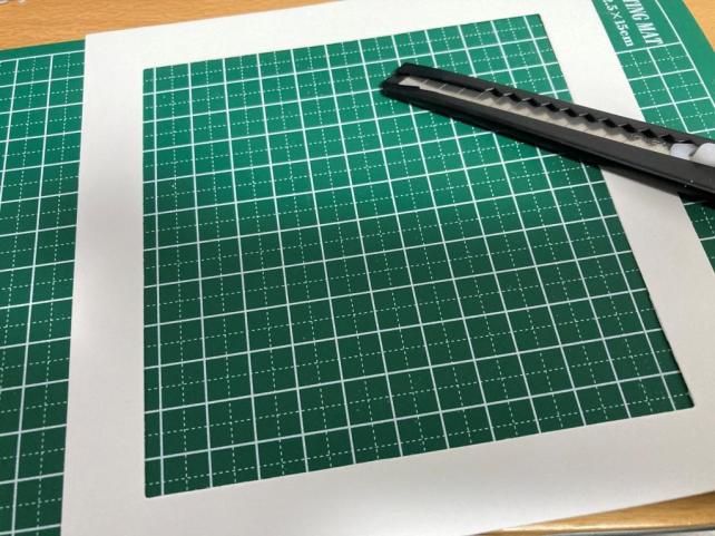 一応、モノサシ、カッターとカッティングマットを準備しないといけません。