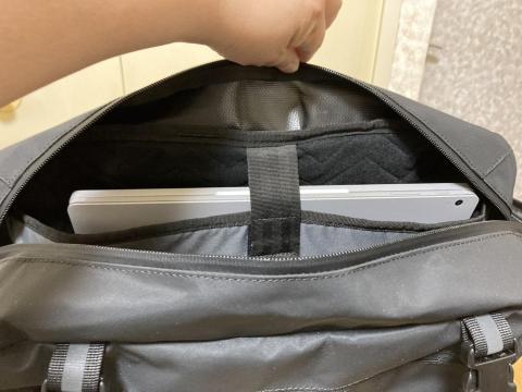 16インチまで収納できるので、やや大柄なSurface Book 3くらいなら余裕で収納できます。