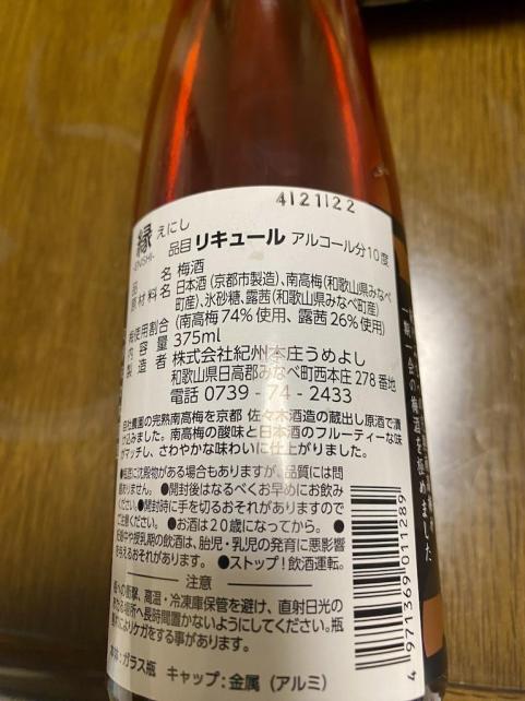 食品表示商品名→縁 -ENISHI-(アルコール度数10%)