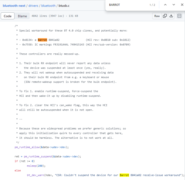 「bluetooth-next」のBARROT チップはBluetooth 4.0 のものしか対応してなさそうでした。