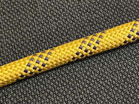 パラコード部分の素材はポリエステルです。編んだ丸紐なので触りはソフトで多少の伸縮性はあるものの、引っ張ったらビヨーンと伸びるという感じではなく強靭な印象です。※多少は伸びます。