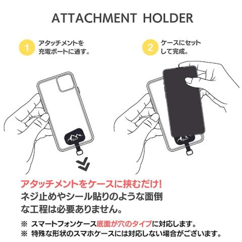 最近のストラップはスマホケースにストラップホールが無くても取り付けられるのものが多く、スマホケースの充電端子部分の穴にアタッチメントパーツ通してストラップを取り付けるというのが主流なようです。