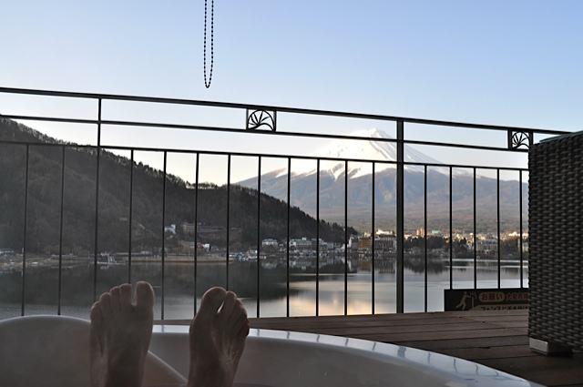 部屋から河口湖を挟んで富士山を臨めるスパ&リゾート 風のテラスくくな