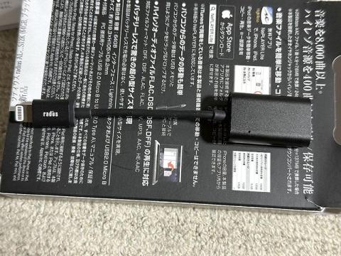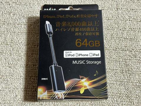 ただ、私が普段試聴ソースとして使うのは主に自作のWAVファイル(24bit/88.2kHz)なのですが、このようなハイレゾWAVはiPhoneのMusicアプリで直接再生することが出来ません。少しならともかく、何曲もそのためにフォーマット変換をするのも面倒です。しかも私が購入するiPhoneはコンテンツを入れて持ち運ぶことは想定していないため、毎回ストレージ容量が小さいのです。そこで音楽再生の時だけ外付けストレージを接続すれば便利かもと思い購入したのが、Radius Music Storage AL-LCS12です。