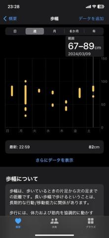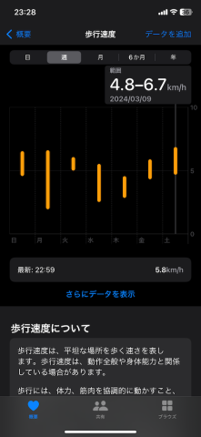 右端のデータがジュニパー・トレイル2 歩行数はともかく 歩行速度が高めにでました。
