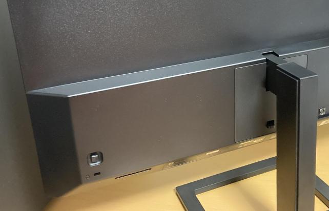 ・モニターの詳細調整は、右側の背面(画像の左下)のジョイスティックで行います。