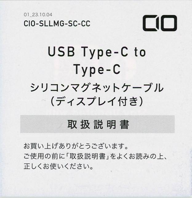 パッケージには、ケーブル本体と、取扱説明書及びメーカーの広告紙片が入っていました。