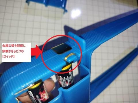 剥き出しの板バネ状の金属の板を配線に接触させるだけのシンプル構造。