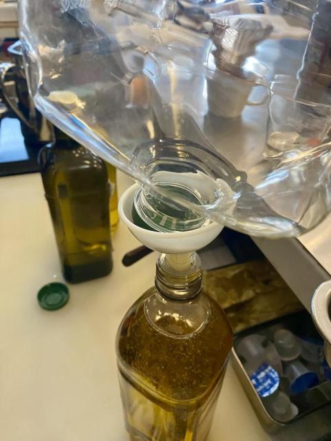 流石にそのままでは使いづらいので、1リットル入りのガラス瓶に小分けしつつ