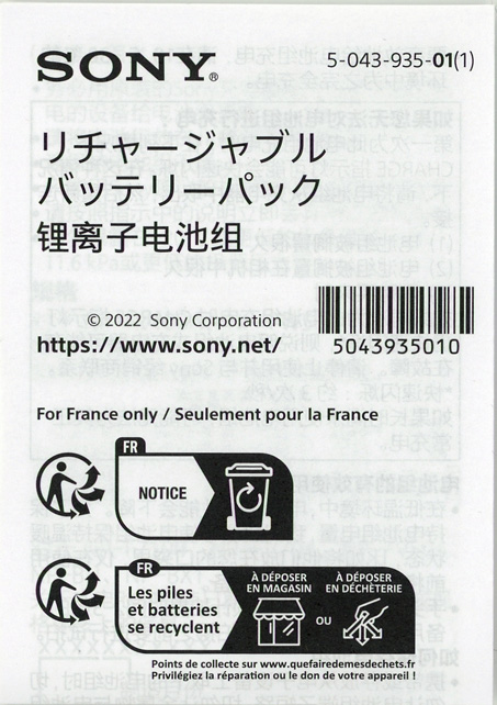 バッテリーの表面には、偽造防止用にSONYのホログラムがセットされています。