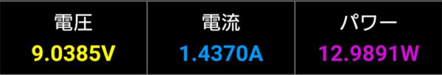 USB PD対応充電器で充電すると、9.04V/1.44A=12.99Wで充電することが出来ました。