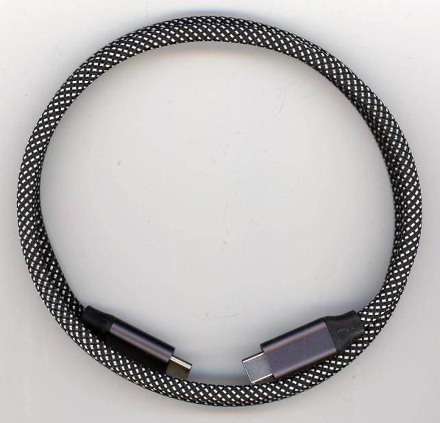 ケーブルが磁化されていて、ケーブル自体を丸めると、ケーブル自体が互いに吸着するので、ベロクロ等で纏めなくても、勝手にまとまってしまいます。