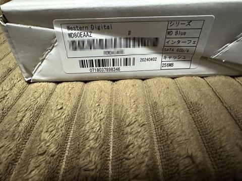 ラベルに「WD80EAAZ」「キャッシュ256MB」と記載されていることでWD80EAAZと特定することが出来ます。