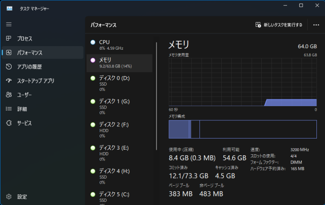 すっげー安かったからうっかり手が滑ったけどよく考えてみたらウチにあるデスクトップPCは4号機を除きDDR4メモリを32GB積んでおりそのどれもまったく使い切っていない。メモリを大量に食う業務アプリを使う訳でも無いゲームもやらない店の印刷物はmac任せ、強いて言えば空いてるスロットとかは埋めたいだけのというどうしようもない癖('A`)