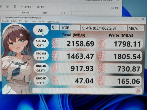 2158のread、1798のwriteが出てるのは、もう大満足である。