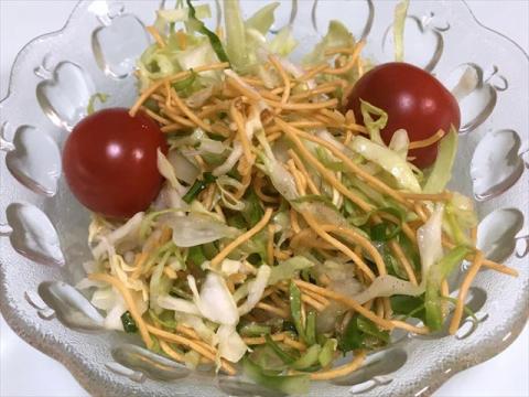 それに「丸鶏ガラスープ」と「揚げ麺」、「キャベツなどの生野菜」、「オリーブ油」、「酢」又は「ビネガー」などがあればサラダは簡単に作れます。
