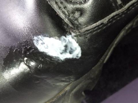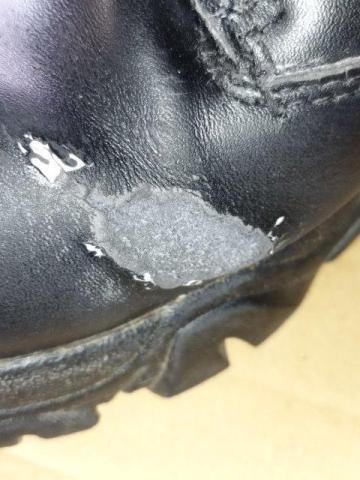 補修箇所の近くの革の弱いところにひび割れが発生しました(^^;