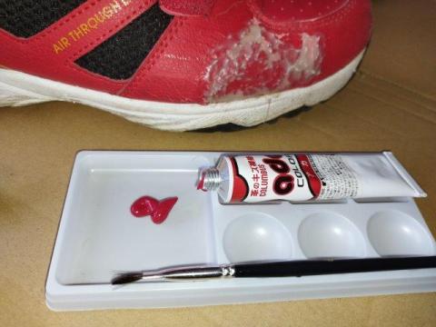 ひび割れに塗り込んで乾かす。水性なので後片付けは簡単