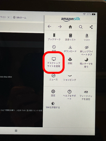 ディスクトップサイトを使用をクリック
