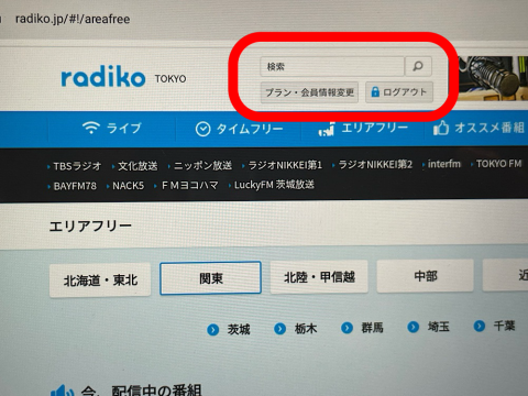 ログインされた状態になりましたの、radikoプレミアムエリアフリー・タイムフリーの利用が出来るようになりました